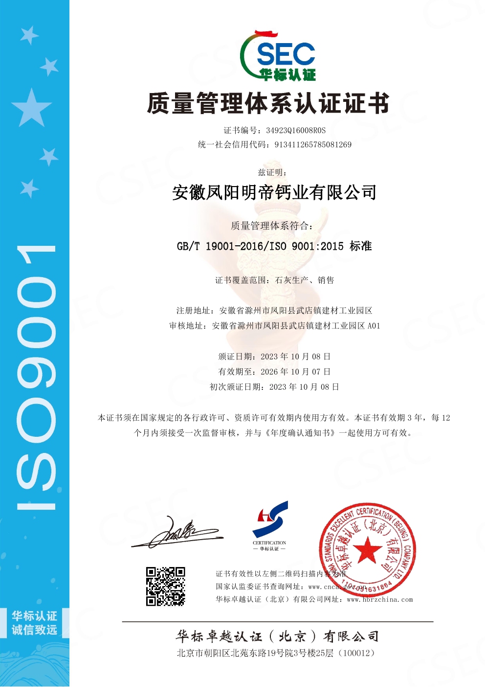 我公司為中國石灰協會理事單位,鳳陽縣武店鎮商會秘書長單位。先后榮獲ISO三體系認證,國家信用等級AAA級,質量等級AAA級認證,十佳誠信企業等榮譽;正在申請高新技術企業。